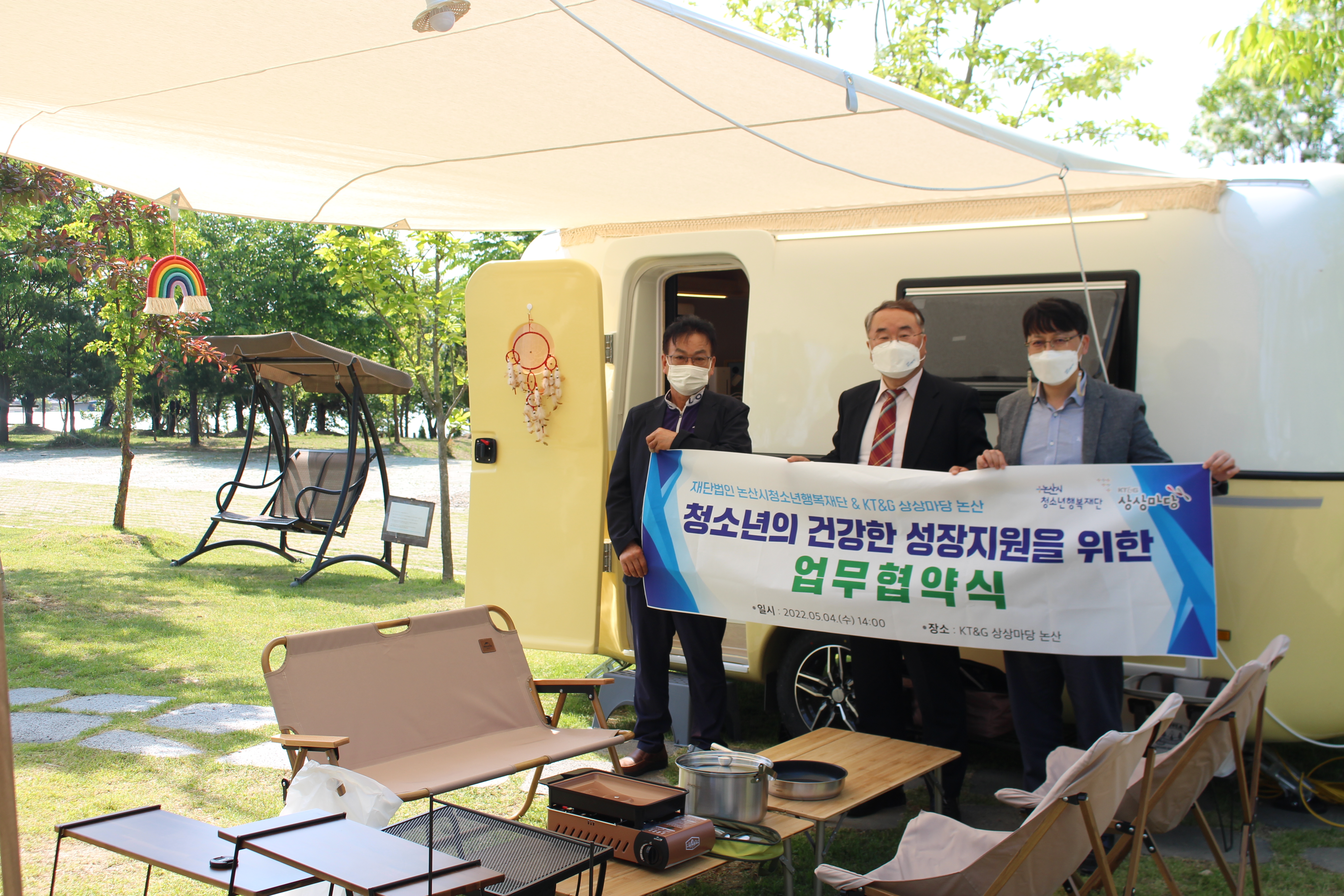 권경주 대표이사는 “ 이번 업무협약을 통해 재단 산하 청소년문화센터와 자연권 청소년 수련시설인 KT&G 상상마당 논산의 각각의 특성을 살려 논산시 청소년을 위한 다양한 청소년 프로그램 활동과 체험의 기회를 제공하는 한편 위기청소년 및 가족을 위한 캠핑 프로그램 진행 등 양 기관의 협업 사업을 더욱 확대해 갈 예정이다”라고 말했다.